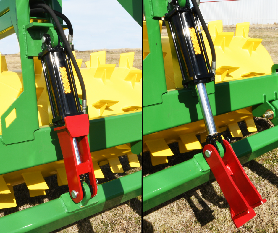 This assembly is designed to catch the aerators in the event of a hydraulic failure (such as a cylinder or hose failure), offering added reliability and peace of mind. The stop can be easily “flipped” up for transport and simply lowered and left in place when not needed.